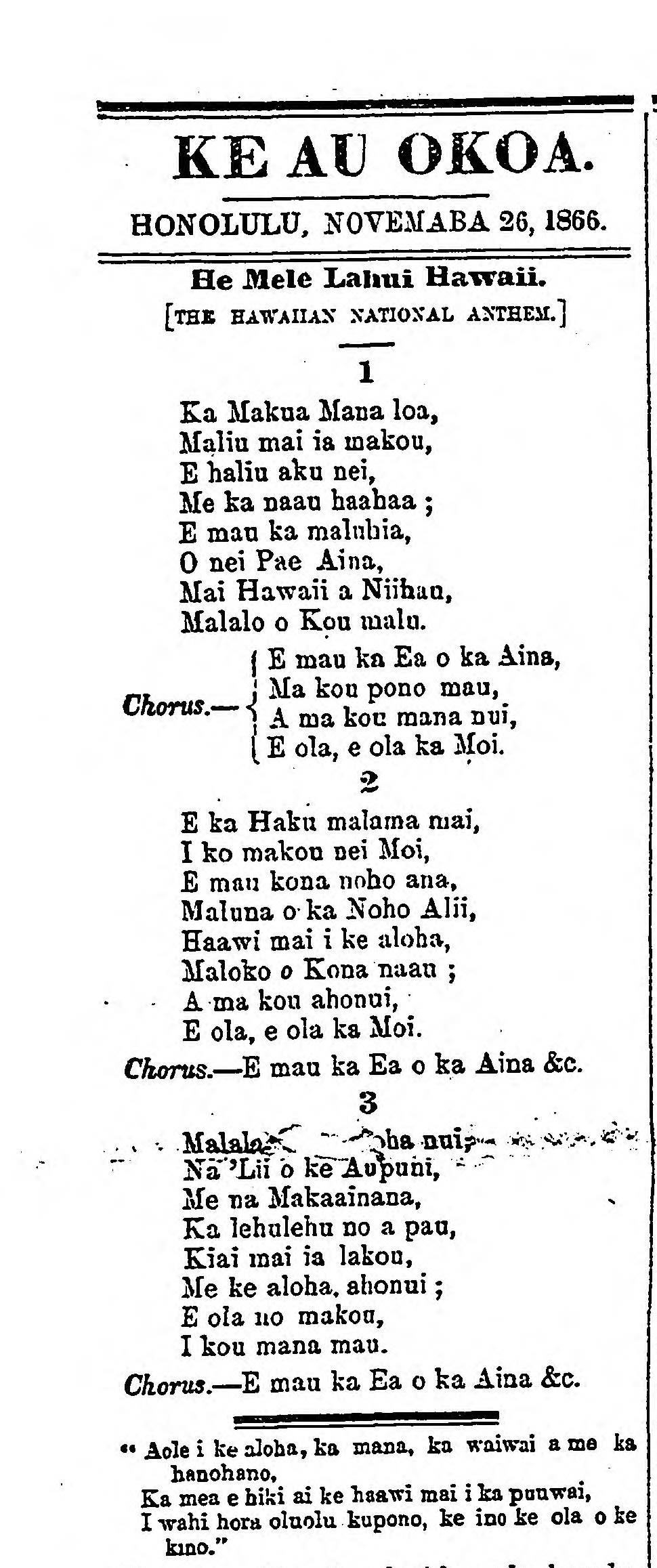 Nuʻuanu, waipuna a ke aloha, Kū kilakila i ka ua Pōpōkapa, Pūkuʻi kāua lā i laila, Kuʻu lei maʻo, ʻo ʻoe ia